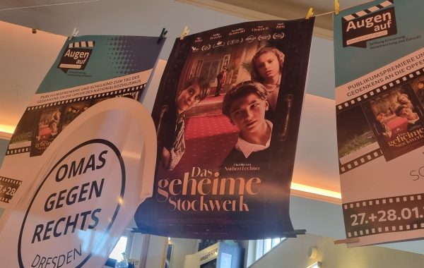 - Filme halten die Erinnerung wachAm 27.01.26, dem Tag des Gedenkens an die Opfer des Nationalsozialismus, fand in Dresden sowie in fünf weiteren Städten Deutschlands der Augen auf!-Kinotag mit einem speziellem Schulkino-Programm statt. Er wurde von der Stiftung Erinnerung, Verantwortung und Zukunft (EVZ) organisiert, und wir, die OMAS GEGEN RECHTS.DRESDEN, haben im Vorfeld Werbung dafür gemacht.