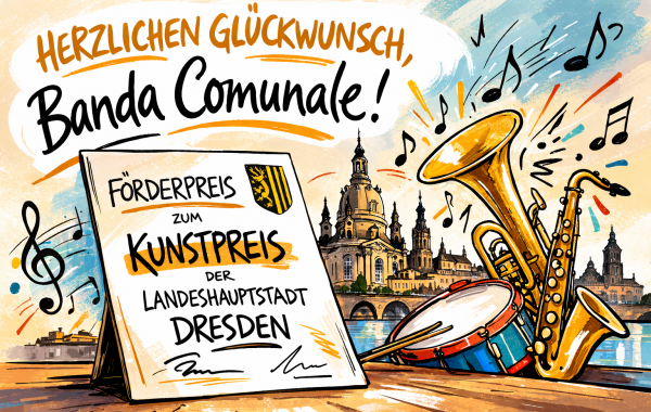 - Offener Brief der OMAS GEGEN RECHTS.DRESDEN an die Banda ComunaleLiebe Banda Comunale, wir freuen uns riesig mit euch über den Förderpreis zum Kunstpreis der Landeshauptstadt Dresden! Von Herzen gratulieren wir euch zu dieser verdienten Auszeichnung – sie würdigt nicht nur eure Musik, sondern auch euren unermüdlichen Einsatz für eine offene, solidarische und vielfältige Stadtgesellschaft.