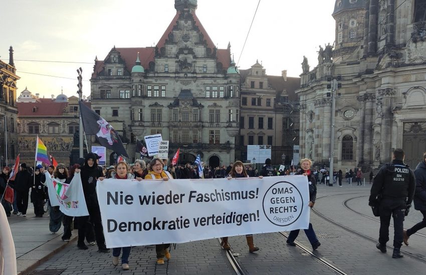 Bis kurz vor Beginn war der Veranstaltungsort für den unsäglichen “Remigrationsvortrag” des Rechtsextremisten Martin Sellner in Dresden ein großes Geheimnis. Das hielt aber neben etlichen jungen Menschen auch einige unserer OMAS nicht vom Gegenprotest ab. Nachfolgend ein kurzer Bericht von OMA Gisela.